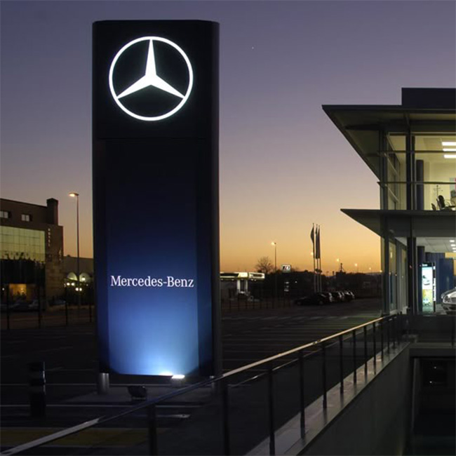 Monument signs are made using materials such as aluminum, stone, brick, concrete, acrylic panels, and optional LED lighting.